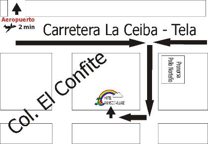 Coming from La Ceiba: Pass the airport and turn in the 2nd street right between the